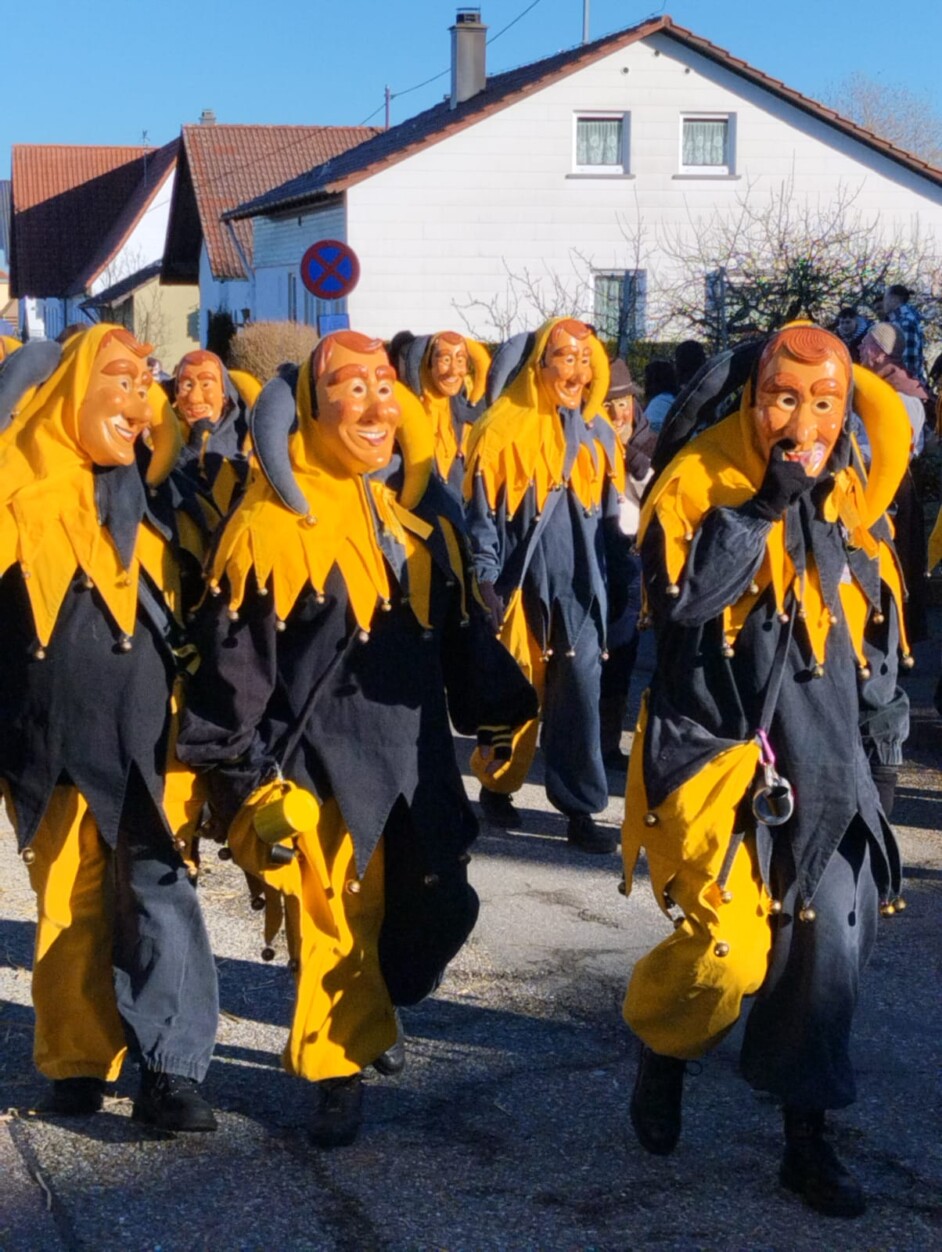 - viele kleine Glöckchen an seinem schwarz gelbem Häs