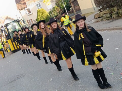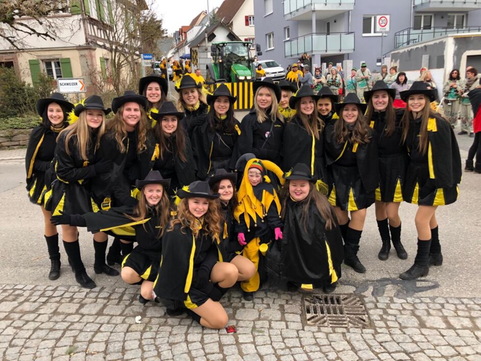 Bei Umzügen immer mit ganz viel Spaß dabei sind nicht nur die Tänzerinnen der Zunftgarde sondern auch andere Mädels der Narrenzunft. Im schwarz-gelben Gardekleid laufen die Mädels bei jedem Wetter mit Hut, Umhang, Rock und manchmal auch Regenschirm mit und heitern die Zuschauer auf. Gelaufen wird im einstudierten Takt.